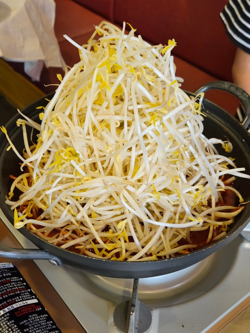 이 숙주는 테이블 위에서 국물의 열기를 머금으며 서서히 숨이 죽고, 아삭함은 그대로 유지하면서 매콤한 국물과 자연스럽게 어우러져 최고의 식감을 만들어냅니다