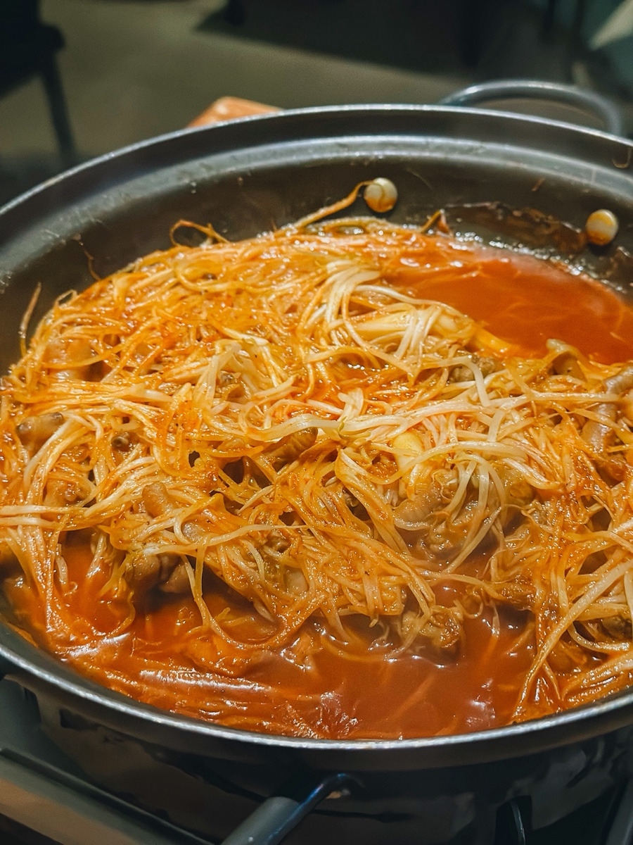 이 숙주는 테이블 위에서 국물의 열기를 머금으며 서서히 숨이 죽고, 아삭함은 그대로 유지하면서 매콤한 국물과 자연스럽게 어우러져 최고의 식감을 만들어냅니다