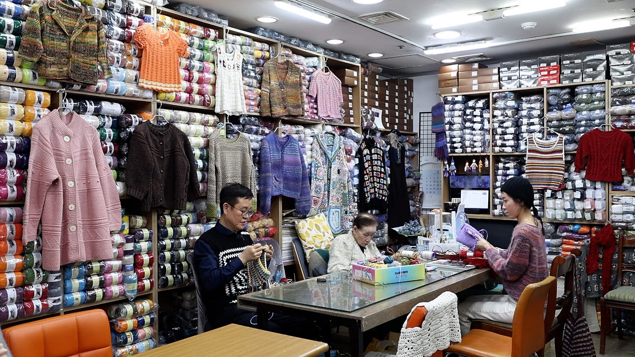 빠르게 변화하는 서울 한복판에서 여전히 손으로 한 코 한 코 시간을 엮어가는 그녀의 모습은 그 자체로 큰 울림을 전합니다. 어린 시절부터 뜨개질에 재능을 보이며 직접 만든 옷을 입고 다닐 정도였던 그녀는, 이후 일본에서도 실력을 인정받아 수출까지 이어갔던 당대의 실력자였습니다.