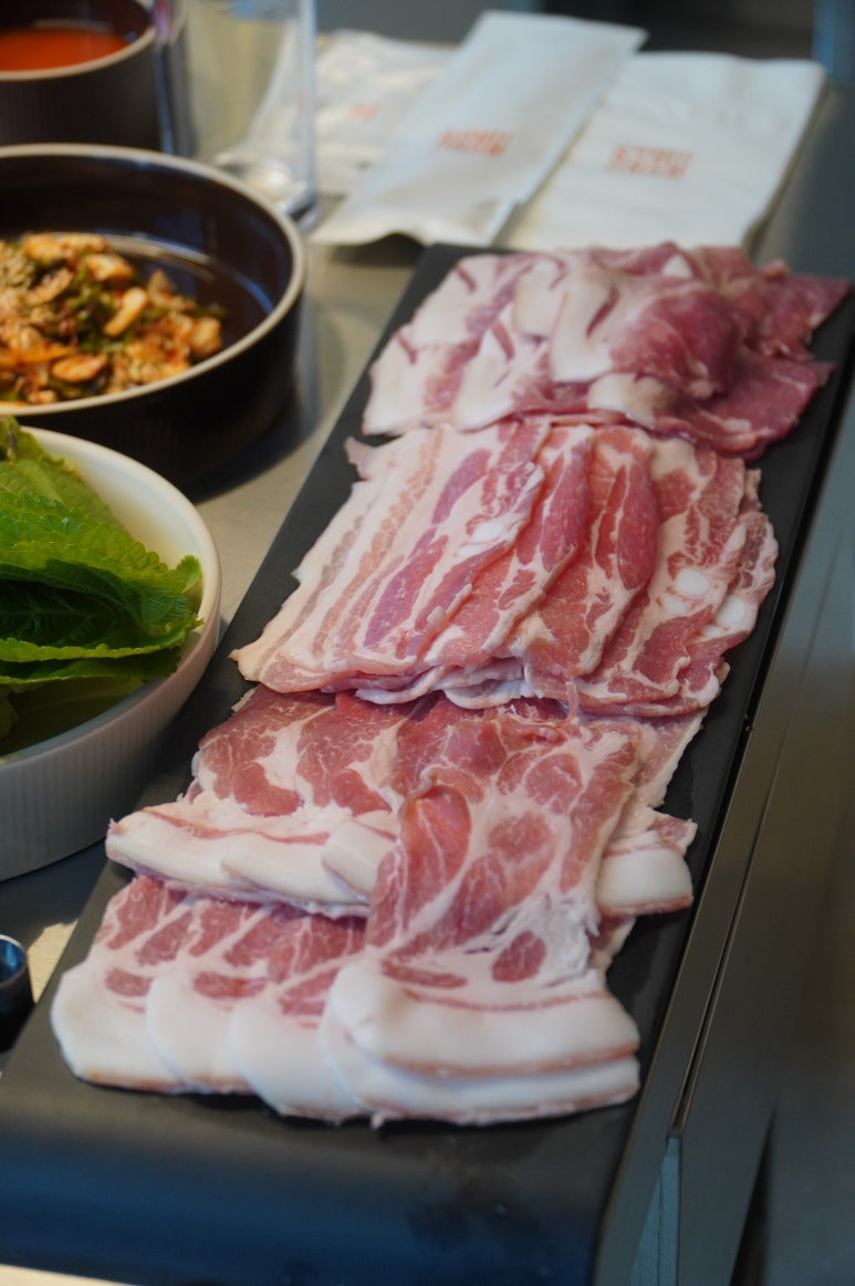 특히 시그니처 메뉴인 레그 슬라이스와 삼겹 슬라이스는 로스로스의 정체성을 가장 잘 보여주는 메뉴입니다. 고기는 자체 숙성 과정을 거쳐 잡내 없이 깔끔하며, 지방과 살코기의 균형이 뛰어나 씹을수록 깊은 고소함이 배어 나옵니다.