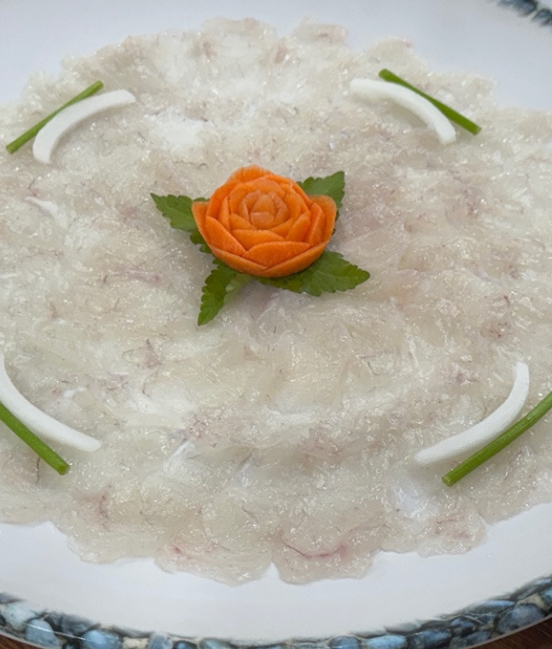 메인 재료인 복어 살은 두툼하면서도 결이 곱게 살아 있어 씹을 때마다 탱글한 탄력이 느껴집니다. 과하게 익히지 않아 퍽퍽함 없이 부드럽고, 미나리와 함께 곁들이면 향과 식감의 조화가 더욱 살아납니다.