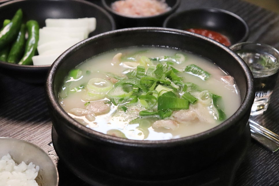 이 집 국물의 가장 큰 특징은 돼지뼈만을 사용해 오랜 시간 정성껏 우려냈다는 점입니다. 불필요한 조미료 없이 재료 본연의 맛으로 승부하기 때문에 국물이 탁하지 않고 깔끔하면서도 진한 여운을 남깁니다.