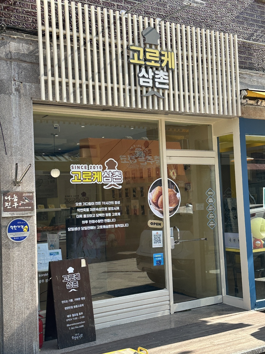 이곳에서 만나는 고로케삼촌은 갓 튀겨낸 고로케로 시장의 활기를 더합니다. 바삭한 겉면과 부드러운 속이 대비를 이루며, 한입 베어 무는 순간 고소한 향이 퍼집니다.