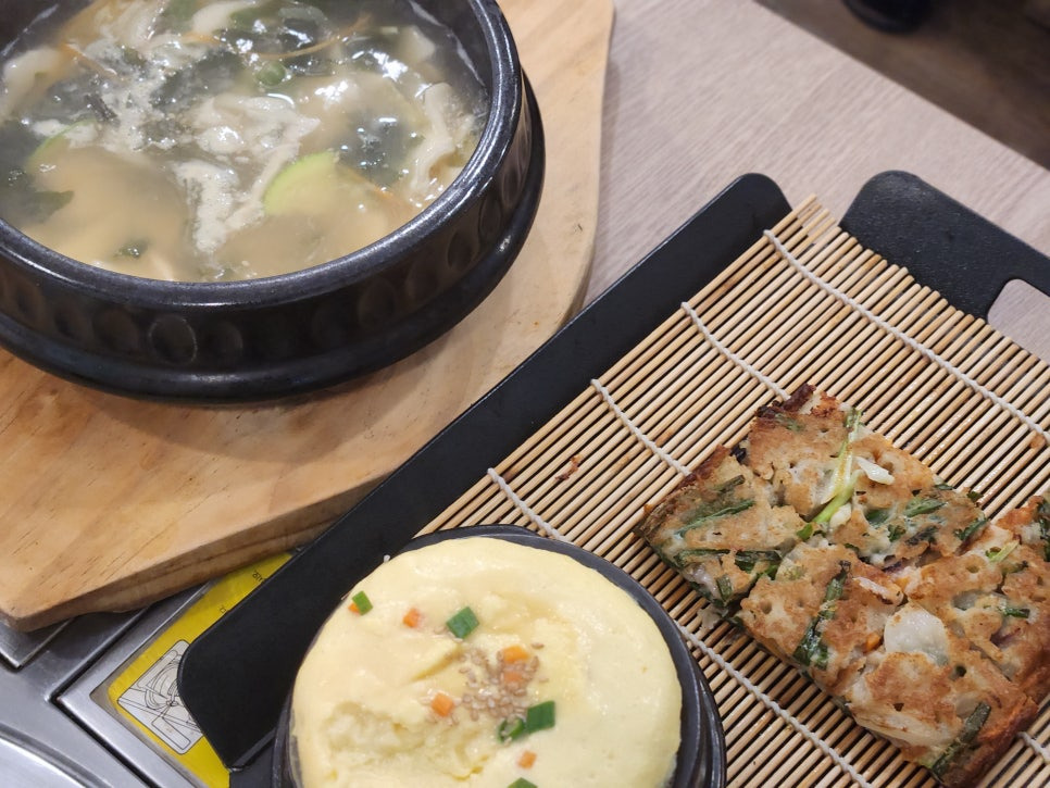 여기에 고소하고 바삭한 파전은 찜의 진한 맛을 중화시켜 주고, 즉석에서 끓여내는 수제비는 쫄깃한 식감으로 또 다른 즐거움을 더해줍니다. 몽글몽글한 계란찜까지 곁들이면 식사의 완성도가 한층 높아집니다.