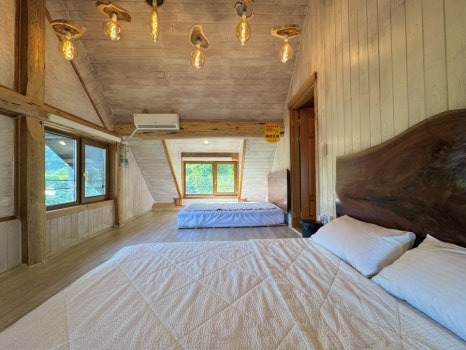 이 펜션은 산속 깊은 곳에 자리해 있어 주변 소음이 거의 없고, 자연의 소리만이 잔잔하게 들려오는 것이 가장 큰 장점입니다. 나무를 중심으로 한 외관과 인테리어는 따뜻하고 편안한 느낌을 주며, 숙소에 들어서는 순간 마음이 차분해지는 분위기를 느끼실 수 있습니다.