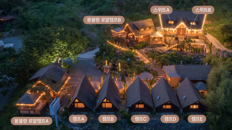 운영 형태는 글램핑의 감성과 펜션의 편안함을 결합한 스타일입니다. 객실 하나하나가 독립된 구조로 되어 있어 프라이빗한 휴식이 가능하며, 동남아 휴양지를 연상시키는 소품과 조명이 곳곳에 배치되어 감성적인 분위기를 완성합니다.