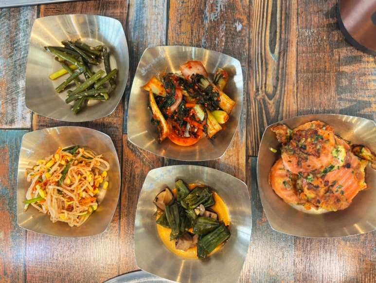 전골과 함께 제공되는 반찬과 솥밥 또한 이 집의 매력을 더합니다. 반찬은 소박하지만 하나같이 깔끔해 전골의 맛을 해치지 않으며, 주문과 동시에 지어내는 솥밥은 윤기와 찰기가 살아 있어 전골 국물과 함께 먹었을 때 풍미가 배가됩니다.
