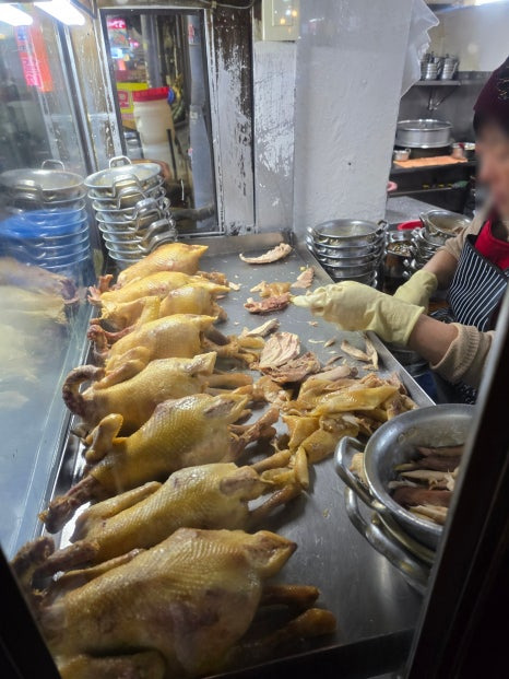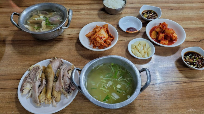 단순해 보이는 상차림이지만, 한 숟갈 뜨는 순간 왜 63년 동안 사랑받아 왔는지를 자연스럽게 이해하게 됩니다. 이곳에서는 일반 육계가 아닌 노계를 사용해 닭을 삶아내는데, 노계 특유의 쫄깃하고 꼬들꼬들한 식감이 닭백반의 핵심 매력입니다.