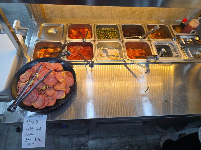 테이블 간 간격이 넉넉해 점심시간에도 복잡하지 않고, 혼밥 손님을 위한 자리도 마련되어 있어 편안하게 식사를 즐길 수 있습니다. 셀프바는 위생적으로 관리되어 필요한 반찬을 자유롭게 이용할 수 있으며, 빠른 회전율 덕분에 바쁜 직장인들도 부담 없이 방문하기 좋습니다.