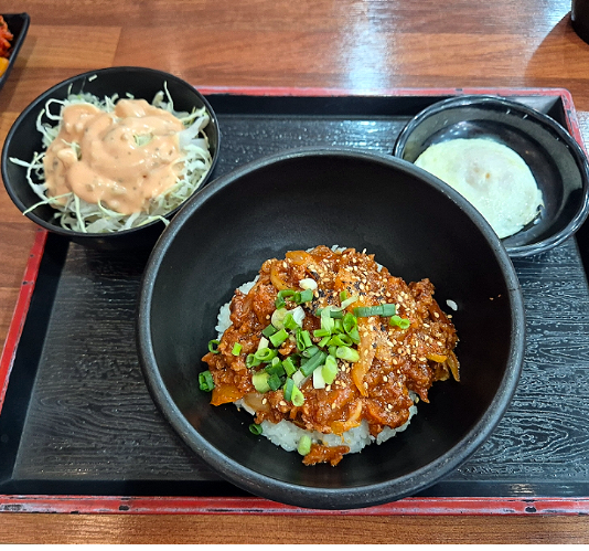 기본으로 제공되는 국물떡볶이, 미소장국, 크림스프 역시 메인 메뉴와 자연스럽게 어우러집니다. 자극적이지 않은 은은한 매콤함과 부드러운 국물 맛이 식사의 균형을 맞춰줍니다.