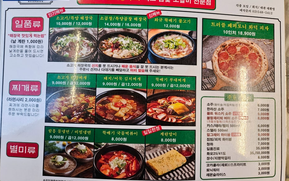 고기 외에도 해장국, 불고기, 김치찌개, 부대찌개 등 식사 메뉴가 탄탄하게 준비되어 있어 점심이나 가벼운 식사 목적으로 방문하셔도 만족도가 높습니다.