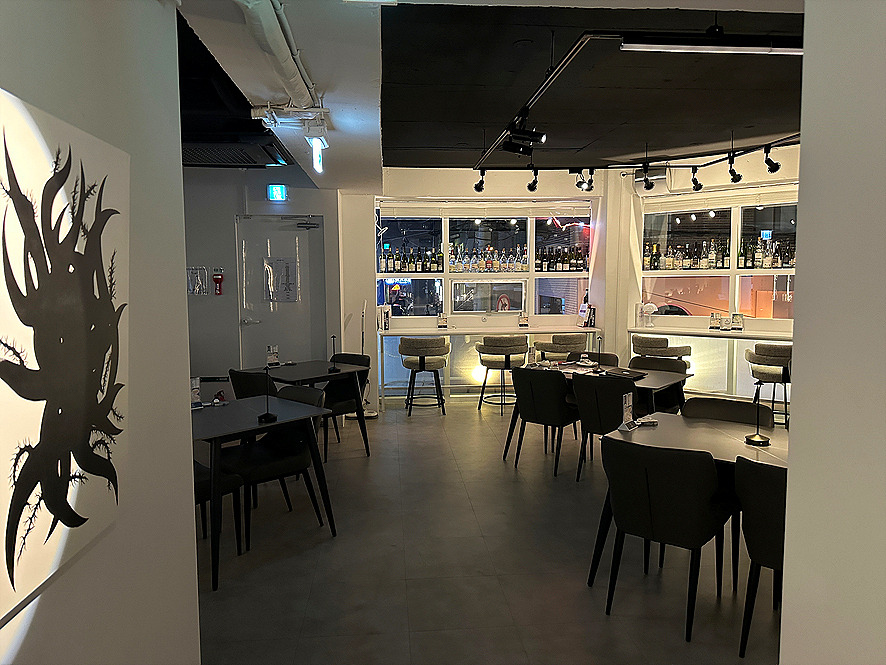 공간 연출 역시 이곳을 특별하게 만드는 중요한 요소입니다. 레스토랑에 들어서는 순간 갤러리에 방문한 듯한 착각을 불러일으키는 인테리어는 시각적인 만족감을 극대화합니다.