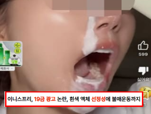 이니스프리, 19금 광고 논란, 흰 액체 범벅 선정성에 불매운동