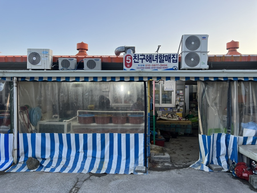 5번 친구해녀할매집은 대변항을 따라 늘어선 해녀촌 가게들 중 번호로 구분된 구조 덕분에 처음 방문하시는 분들도 어렵지 않게 찾으실 수 있습니다.